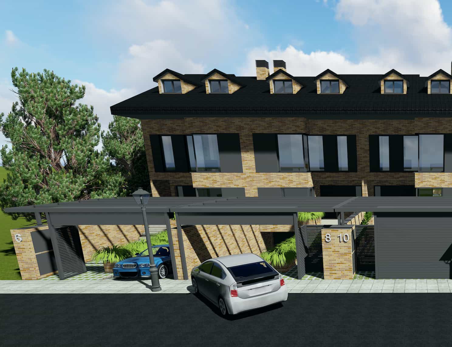 Promoción de 5 Viviendas Unifamiliares exclusivas, en la calle Francisco Tárrega, de la Teneria II de Pinto. Se compone de una vivienda, de tres o cuatro dormitorios, con planta sótano, planta baja, planta primera y buhardilla, con salida a una terraza solárium. Lleva incorporado dentro de la vivienda, un patio inglés, dotando a la misma, de mucha luz natural. En planta sótano, cuenta con dos opciones: una que seria toda la planta bodega, y la otra opción, sería de garaje.